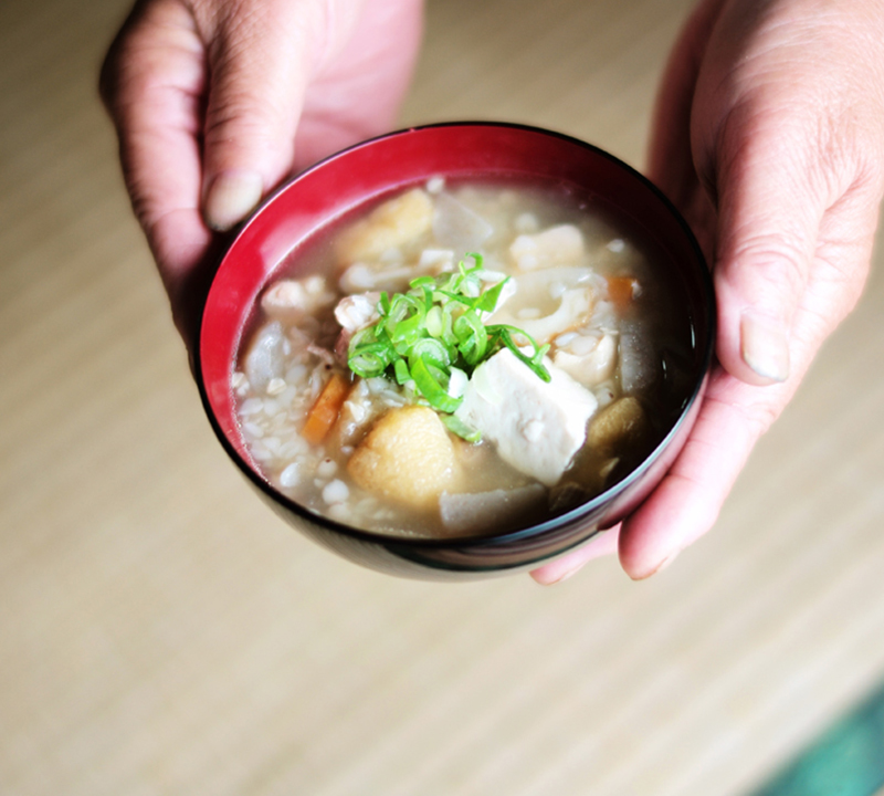 「そば米」を使った雑炊やお汁は徳島県民のソウルフード!給食でもでるほど定番で人気の高いメニューです。産地祖谷は高い山に囲まれて米が作れないため、昔からそばが作られていました。ソバ米とはソバの実を塩ゆでして、からをむき、乾燥させたものです。全国でも珍しい食べ方ですが、プチプチとした食感が好まれています。