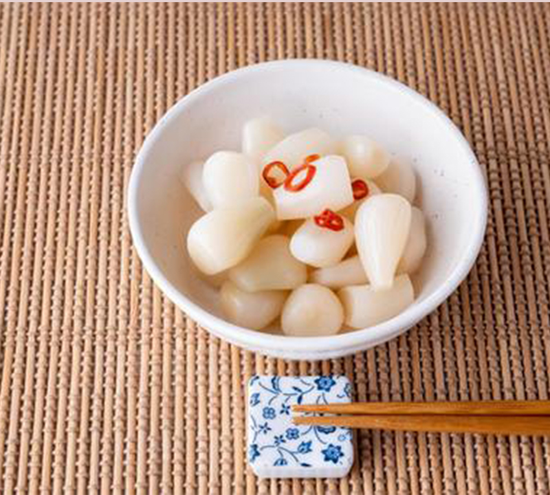 カレーライスの薬味に使われる甘酢漬けがポピュラーだが、シンプルな塩漬けも美味。天ぷらにしたり、タルタルソースのピクルス代わりにもなる。